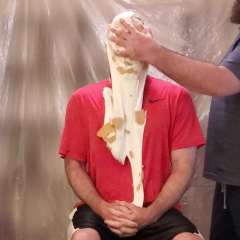 GunkDunk89 was surprised by PreppyGuy with a big sloppy cream pie to the face